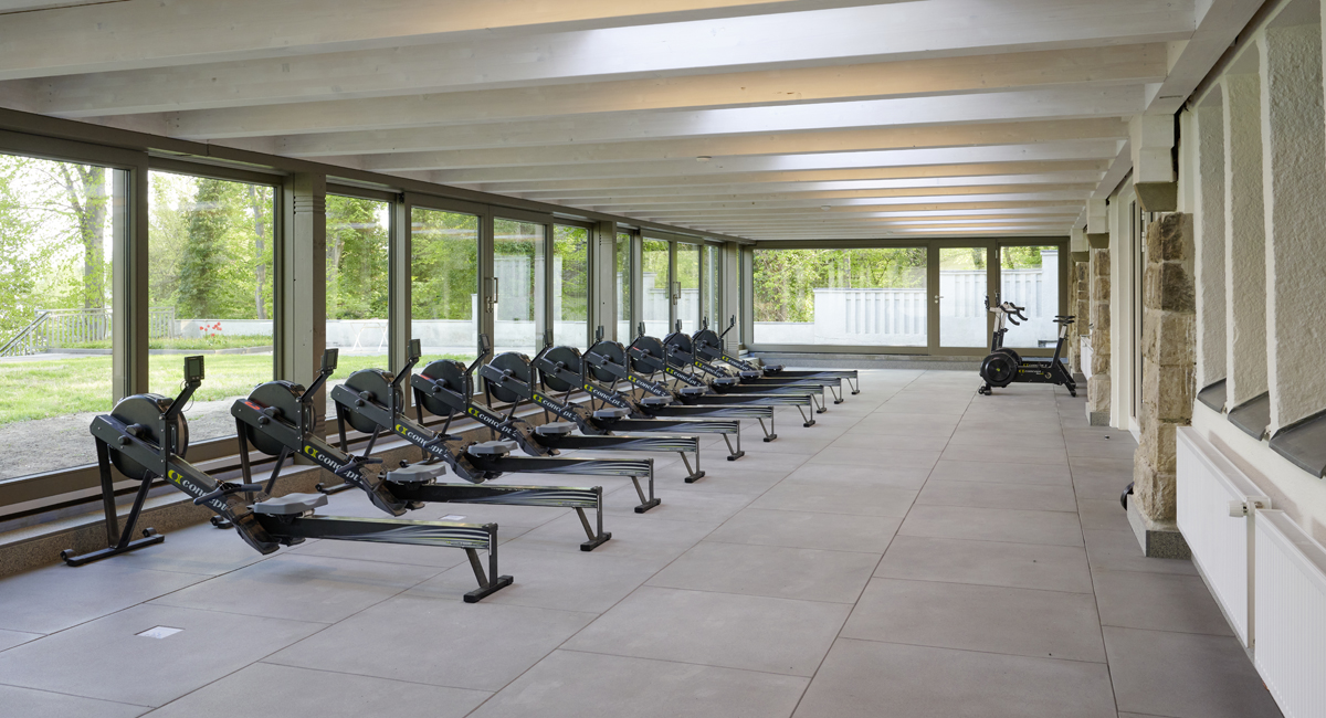 Der Umbau des historischen Clubhauses stellt mehr Fläche für den Sportbetrieb bereit. Um die ehemalige Umkleidehalle für den Indoor-Sport nutzen zu können, wird die Umkleide mit den historischen Schränken in einen unterirdischen Anbau verlegt. Ein wintergartenartiger Abbau ergänzt das Clubhaus um Trainingsgelegenheit an Rudergeräten. Eine Vielzahl von Einzelmaßnahmen ertüchtigt das Gebäude entsprechend der heutigen Anforderungen an den Brand- und Wärmeschutz. Die Eingriffe wahren die historische Erscheinung und schreiben den vorhandenen Charakter mit zeitgenössischen Vokabular fort.